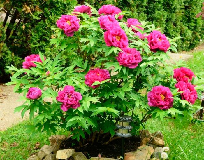 Растение цветет в конце сезона, вплоть до наступления холодов. Обладает средней морозоустойчивостью, а если вам кажется, что свежевысаженный цветок плохо перезимовал, то, скорее всего, это потому, что древовидные пионы принимаются немного тяжелее, чем травянистые.